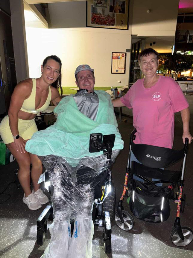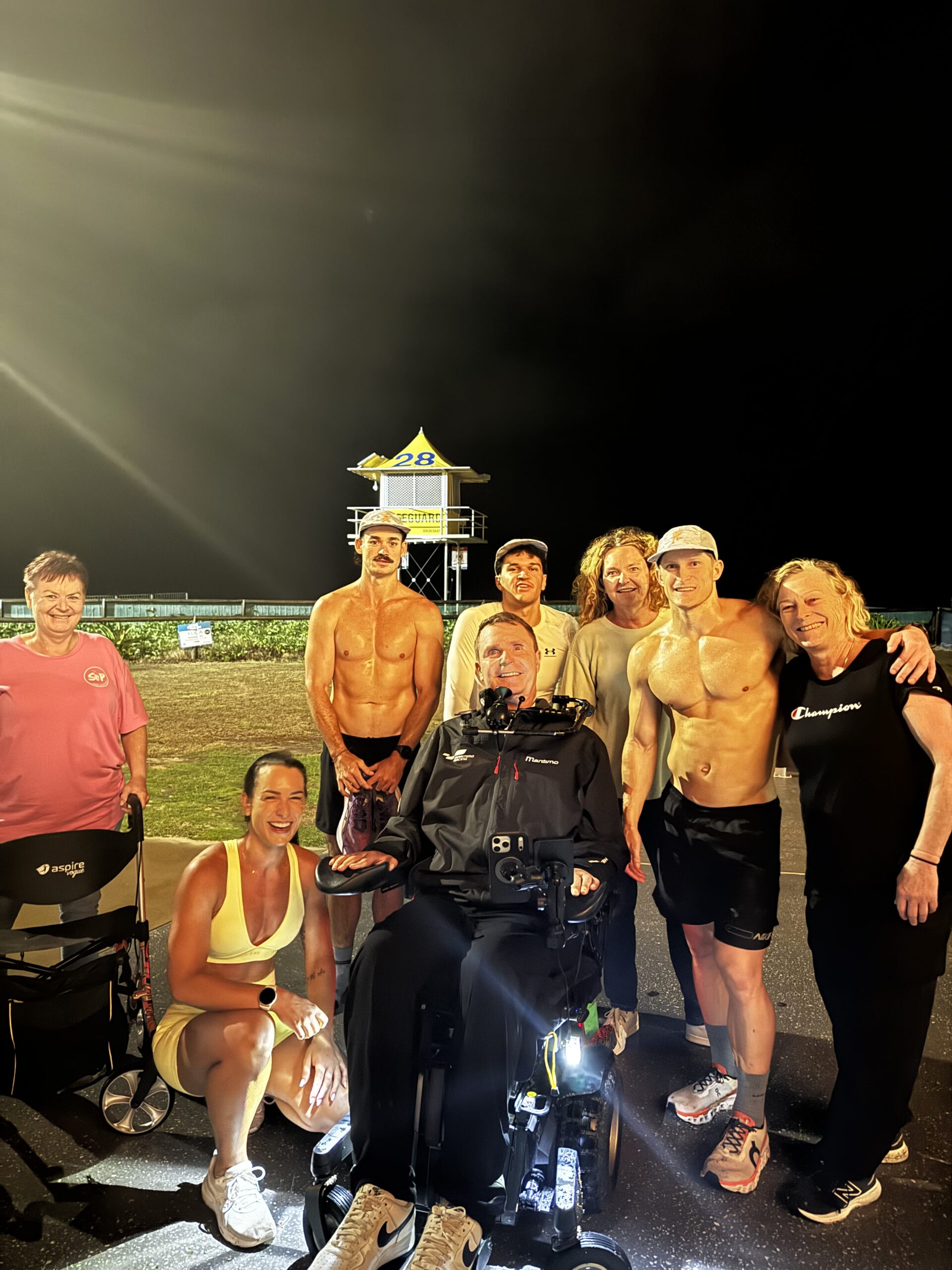 Fatigue set in. Perry’s wheelchair battery needed to be regularly recharged using a generator to keep moving. Despite torrential rain and cool night air, supporters gathered at Kurrawa Park. They tagged alongside Perry and Dan. They braved the conditions. They showed up – not just physically, but emotionally too.